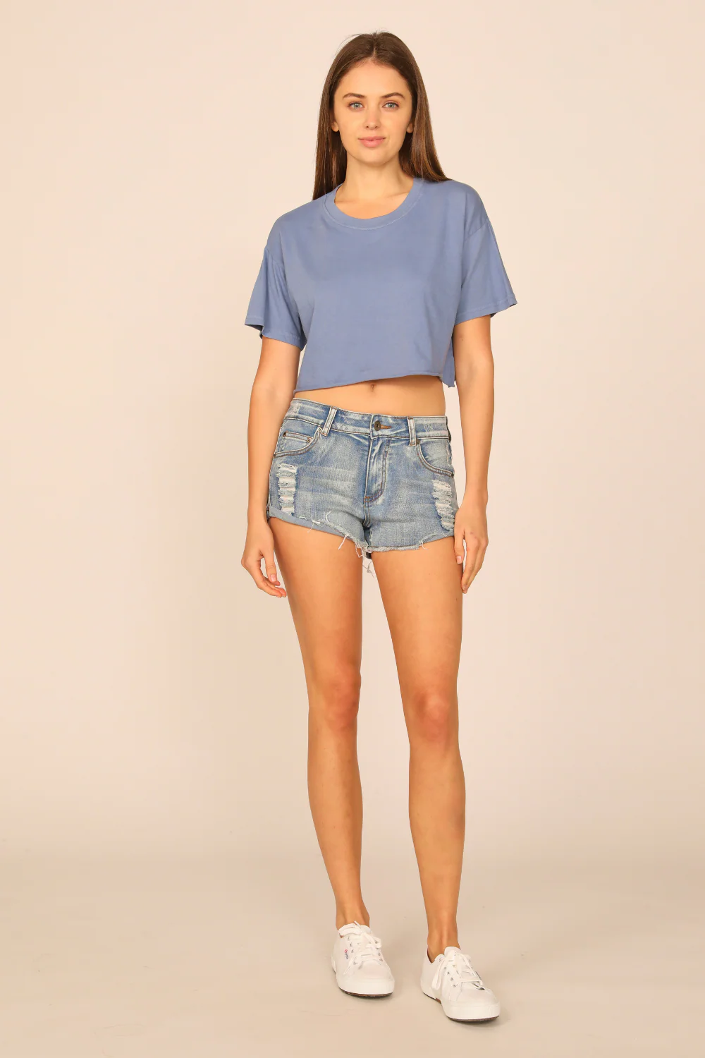 The Coastal Denim Garment Dye Boxy Crop Tee Features:Ā