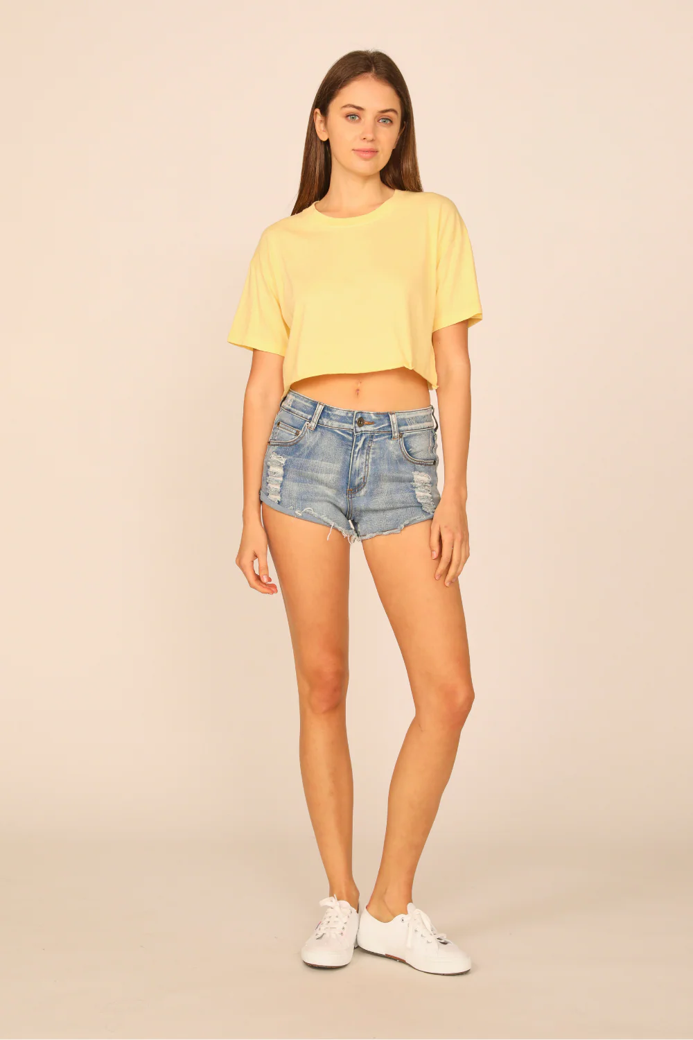 The Yellow HazeĀ Garment Dye Boxy Crop Tee Features:Ā